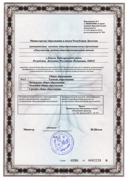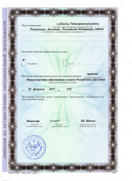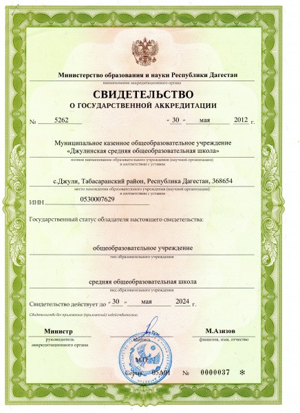 | Адрес местонахождения образовательной организации* | 368657 ,Республика Дагестан, Табасаранский район,с. Джули, ул.Школьная 3 |